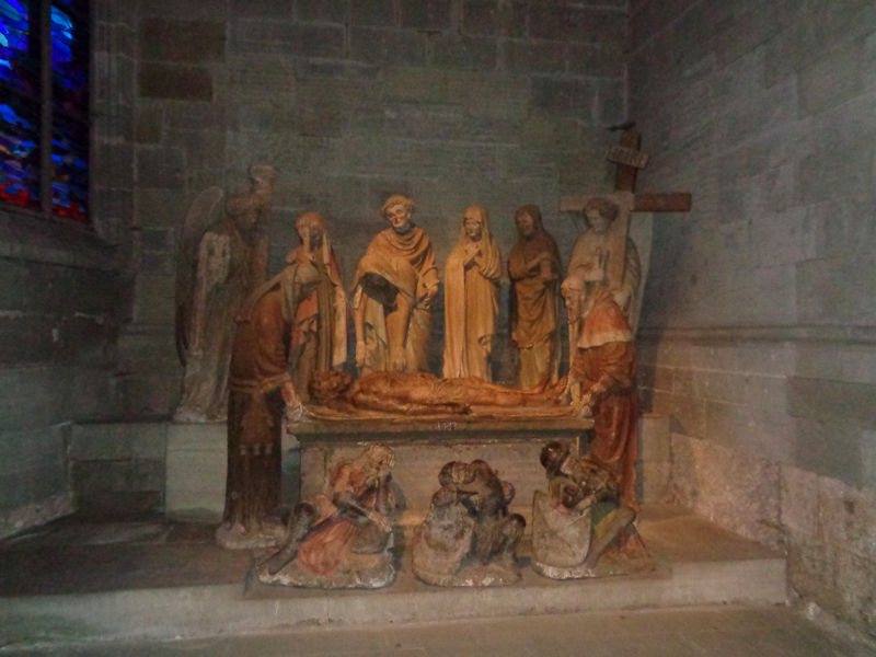 In the Chapel of St Sepulchre, the burial of Christ in figures of local sandstone, or molasse, 1433