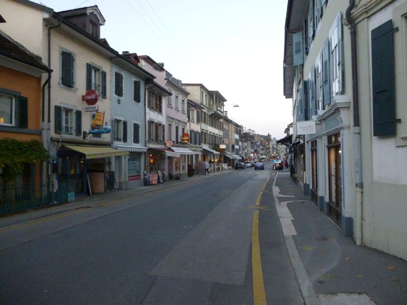 The high street, or Grand-Rue. Like many medieval lakeside towns, the lakeside through-road ran straight along parallel to the coast, with, halfway through town, a perpendicular road running up into the hills (if any).