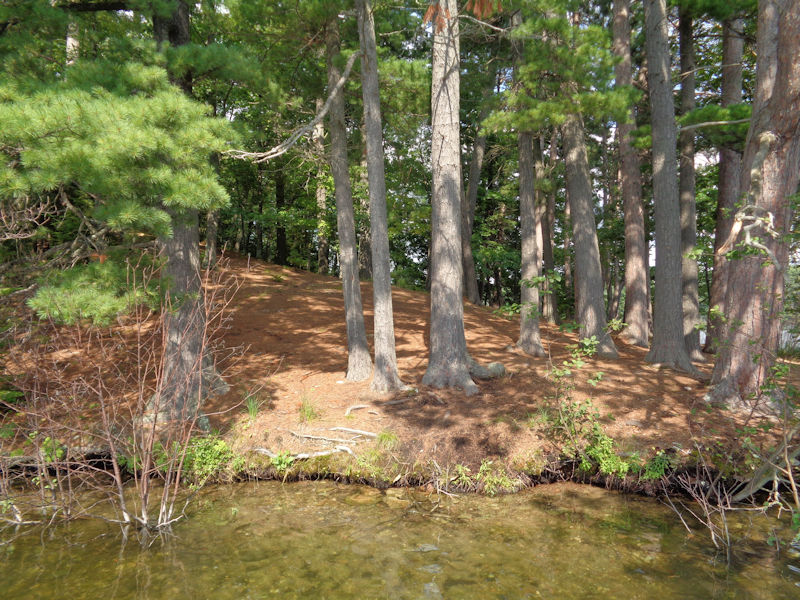 Most of the six or seven islands on the lake (depending upon lake levels) are owned by the trust that succeeded the lumber company that operated on the lake in the 1890s and early 1900s -- but not this one.