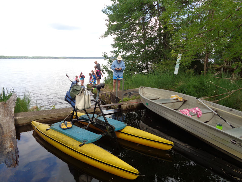 Back from the dock after a daily excursion on hydrobikes, hunting along the shorelines for mushrooms and for the noxious invasive weed, the purple loosestrife. (We eat the first and tear up the second for burning.)