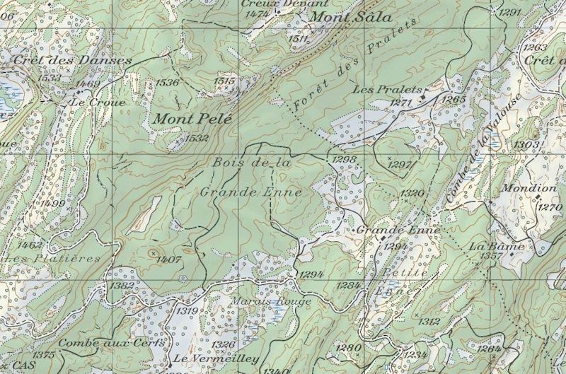seen. We're leaving the car at the meadow of Les Pralets (1265m, map below), and