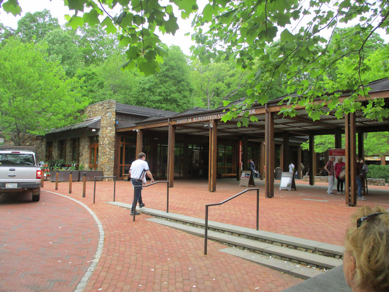 Having clambered up four tiers of entirely full parking lots, we're greeted, not by Monticello, but by the David M. Rubenstein Visitor Centre. The mid-18th century ambience hasn't yet had a chance to gain purchase with us.