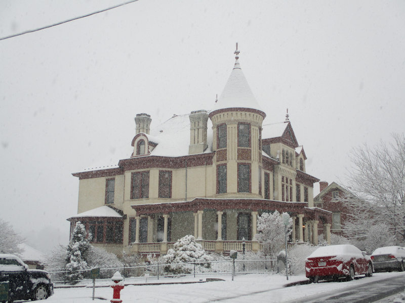 Nearly a château right here in the USA -- in fact, it's described in the brochure as by T. J. Collins in the 'Chateauesque style', 1910. Note the 'finials'!