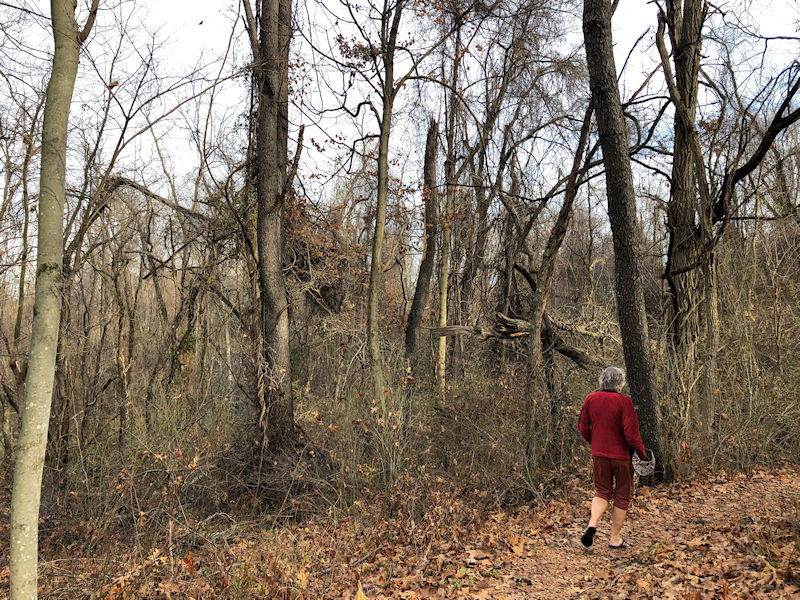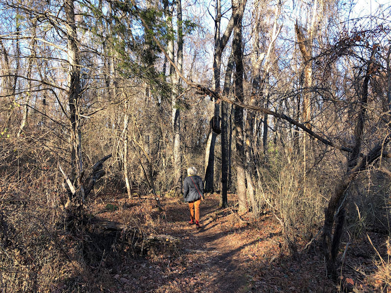 Our favorite local walk is in the Montgomery Hall Park 'jungle', three marked trails (with very little chance of wandering off them) of 45 to 70 minutes duration and possibilities for combining parts of one with another.