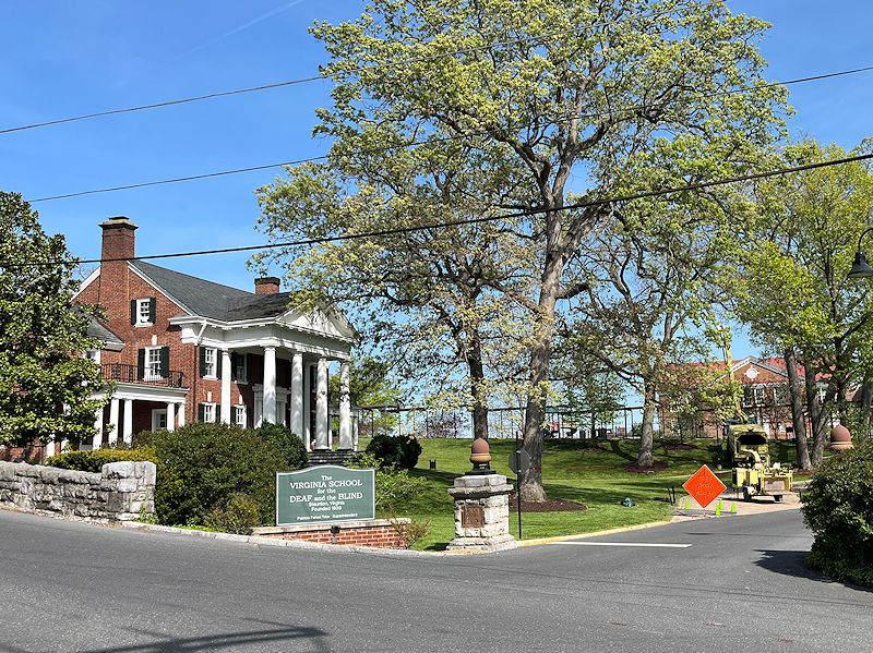 The eastern side of E Beverley from here on is taken up by the beautiful campus of the Virginia School for the Deaf and the Blind, first established in 1839 with the main Greek Revival buildings completed in 1846.
