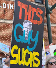 'Trump is a dump . . . trans & gay rights!' 'Absolutely no kings in America! Except maybe Elvis!' 'Proud Member of Antifa'. 'We the People must restore democracy!'