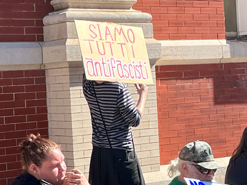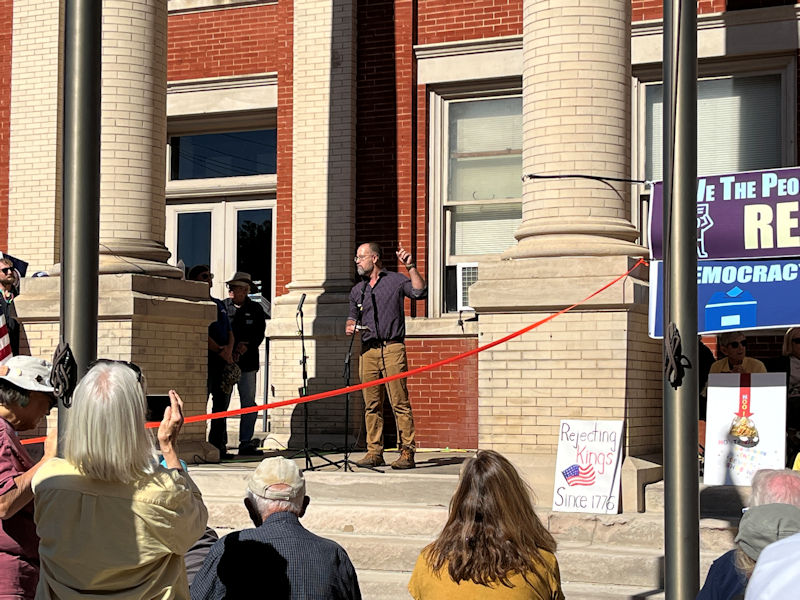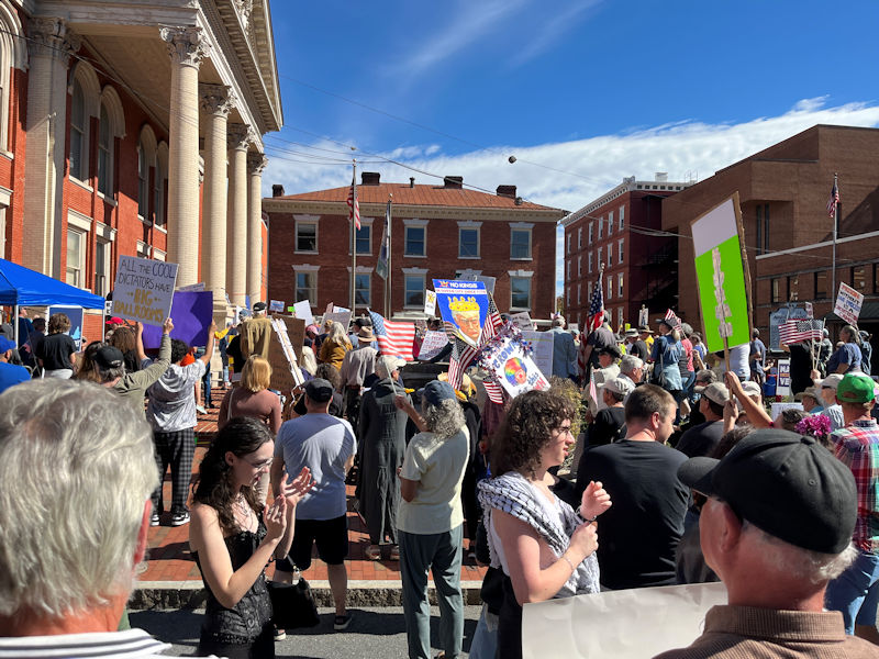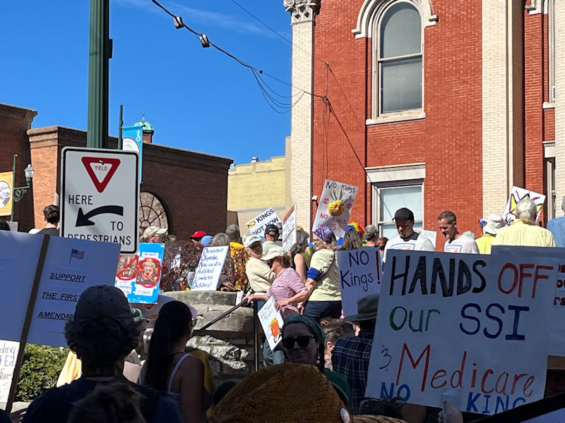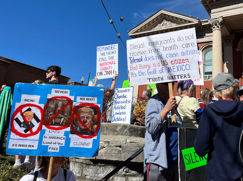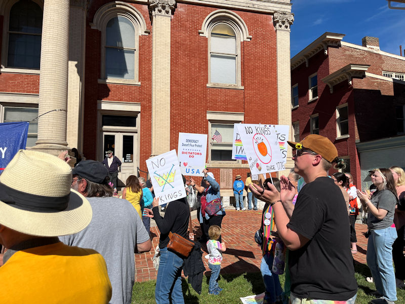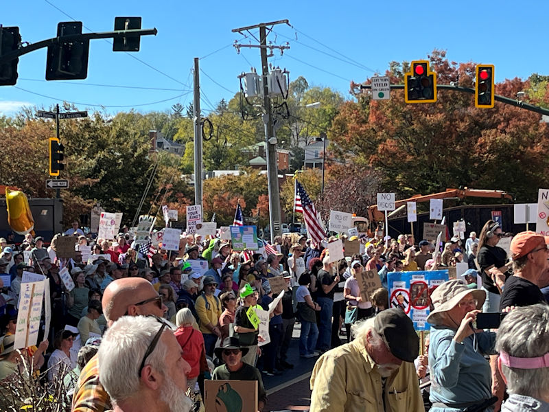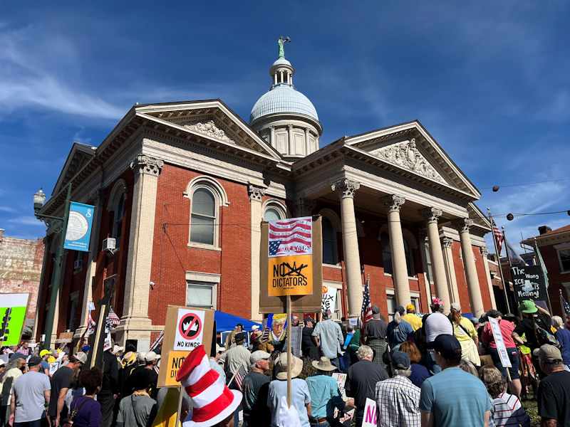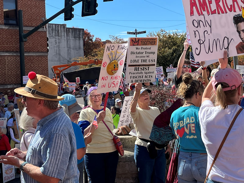 The first 'No Kings' demonstration was held in the same venue on 14 June 2025, reportedly with good attendance, but we were halfway across the country and missed it here. Today, however, here we are for 'No Kings II', 18 October, and we learn from reports of the many other demonstrations round the country, estimated at 2,700 of them with an estimated turnout of some 7 million patriotic citizens, it's all been hugely successful -- with a general atmosphere both joyful at the camaraderie of the participants and a range of serious grievances against the present lawless regime.