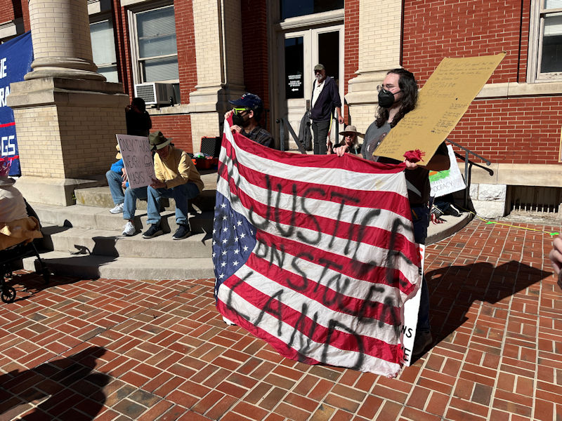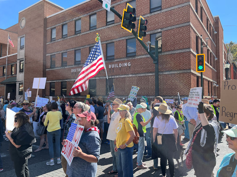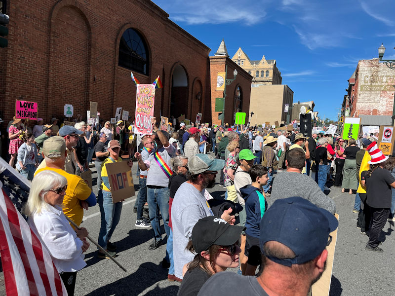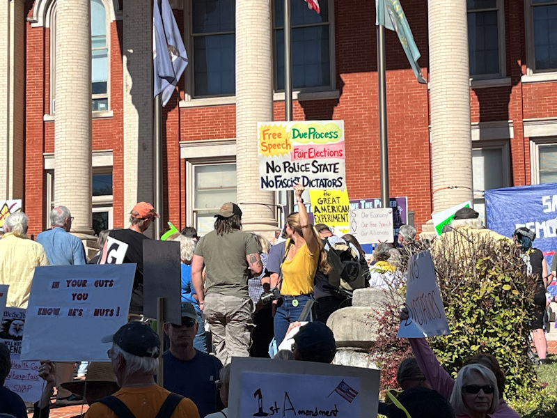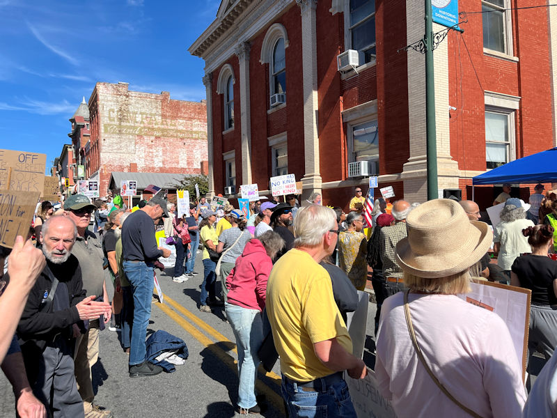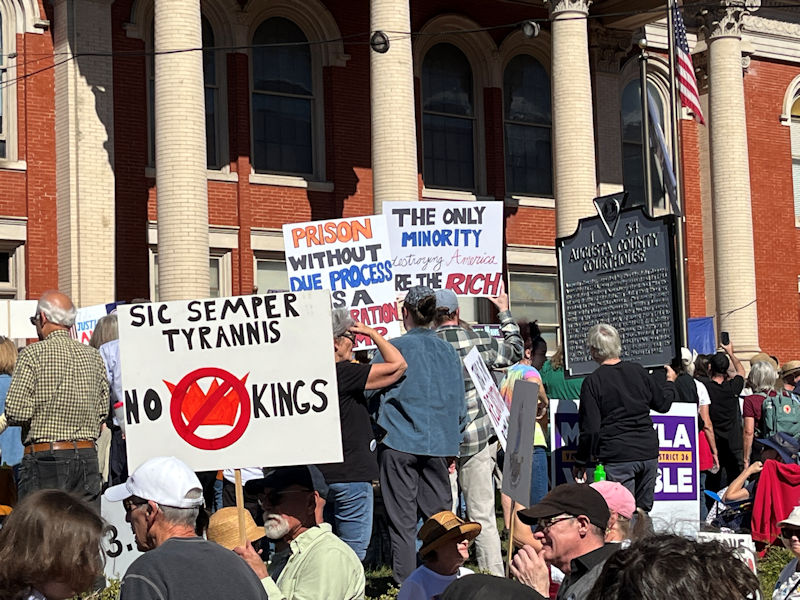 But here's a sizable collection of what we came up with, here in downtown Staunton (a town of some 26,500 citizens), but just possibly including some citizens of the outlying Augusta County, just catching on now about how serious the administration's lawlessness could be for them as well.