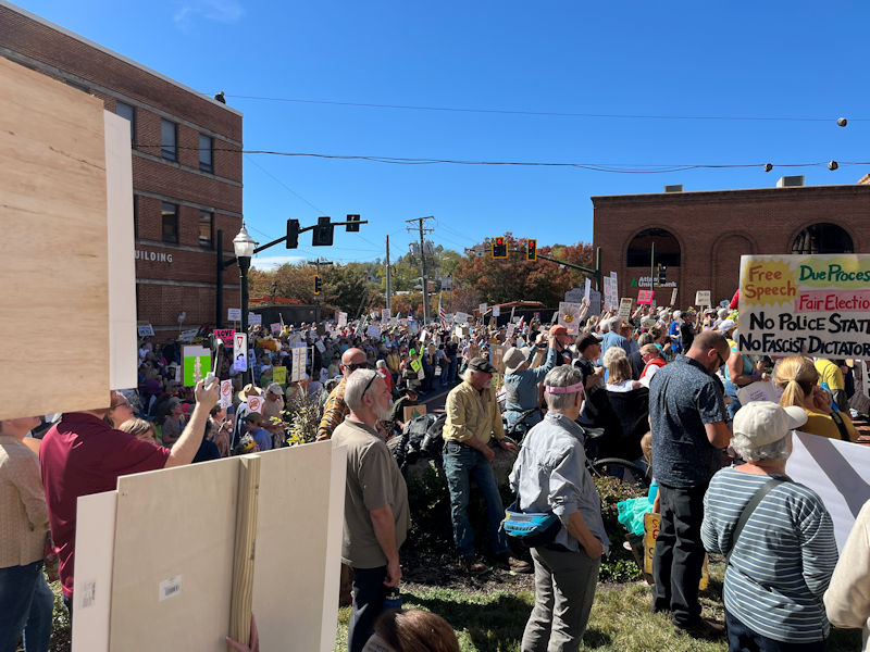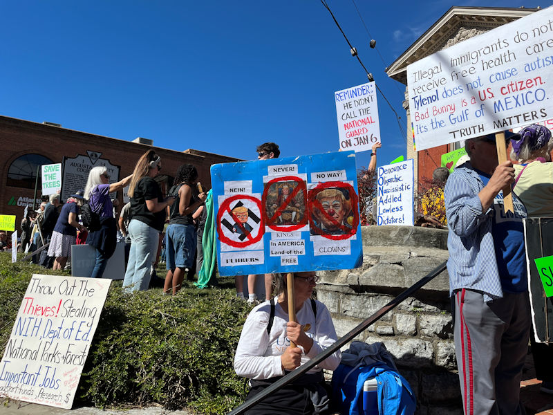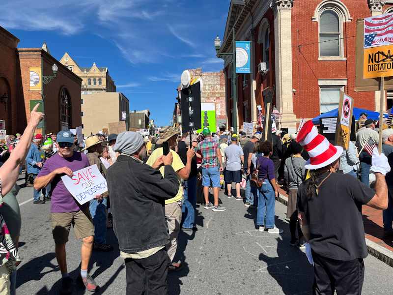 Chris Graham of the Augusta Free Press estimated the overall attendance here at 1,700 participants and mentioned that 'the only disruption was brief': 'A man with a makeshift sound system tried to lecture people from passages in the Bible, and struggled to make something of a point about the murder of White nationalist Charlie Kirk, but he didn’t get any traction with those around him, and didn’t hang around very long.' [source]