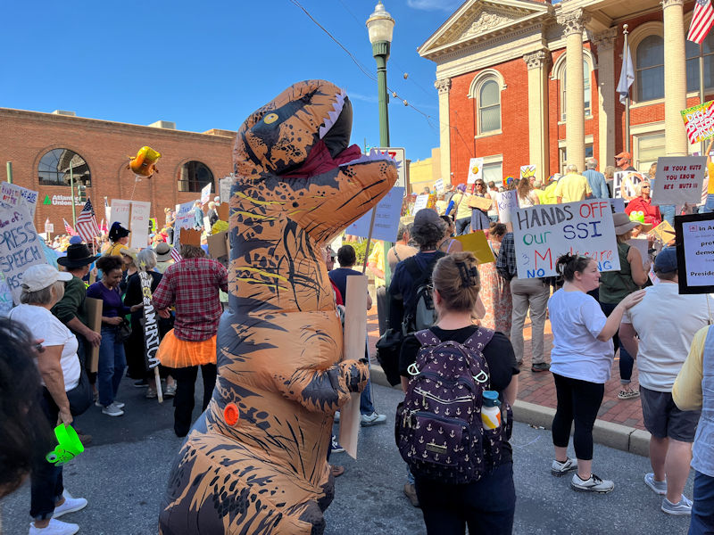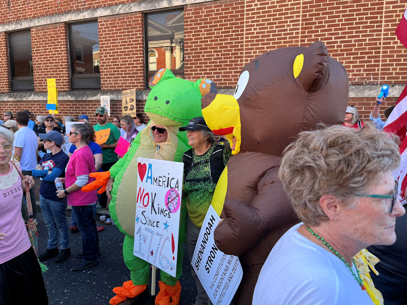 Here in Staunton, it seems all to have transpired much as everywhere else -- an apparently superb police presence for all the best reasons, and therefore no untoward incidents, funny signs and inflatable costumes, serious exhortations from the microphone about the people's various complaints, not all identical but so what.