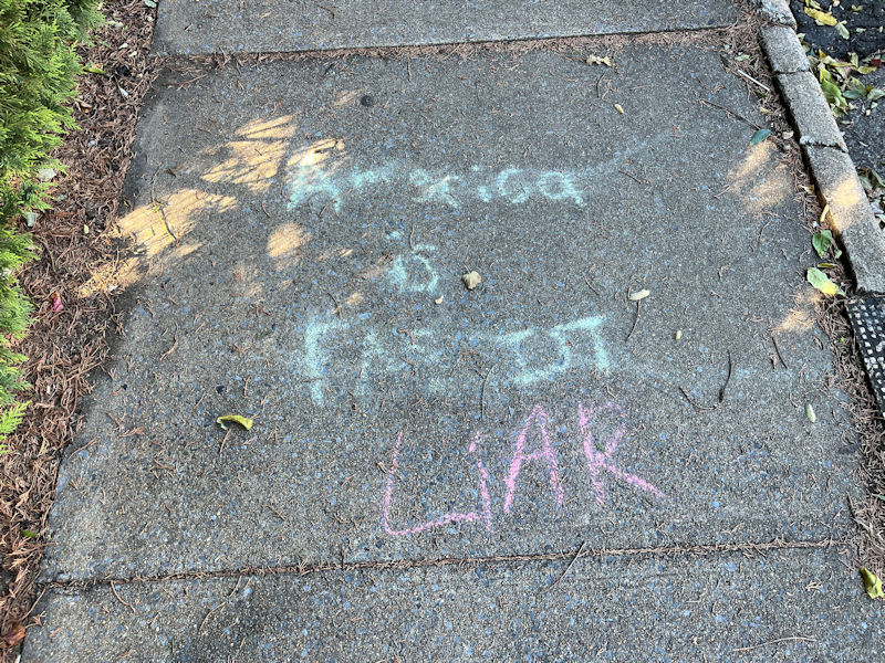 'Trump is a dump . . . trans & gay rights!' 'Absolutely no kings in America! Except maybe Elvis!' 'Proud Member of Antifa'. 'We the People must restore democracy!'