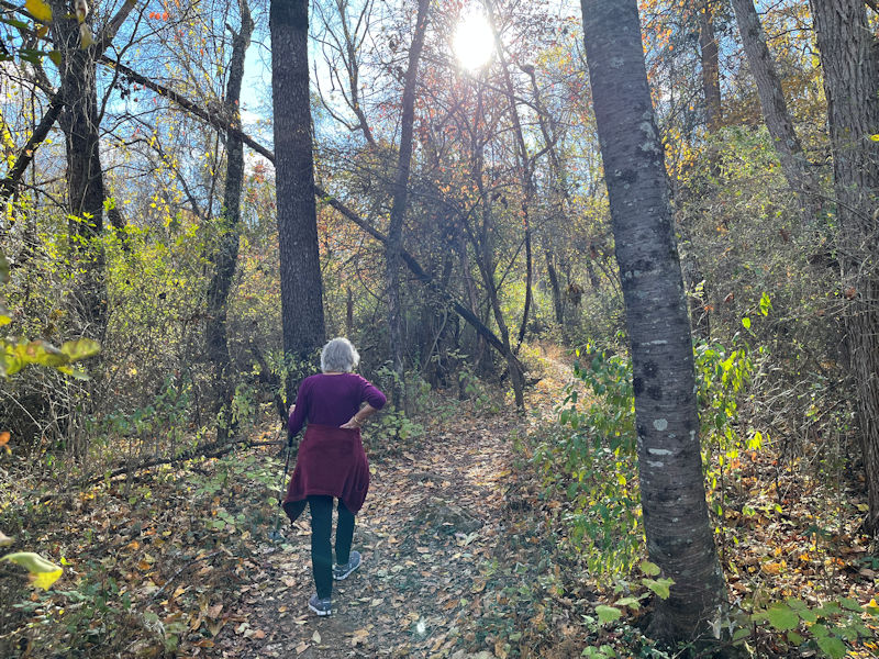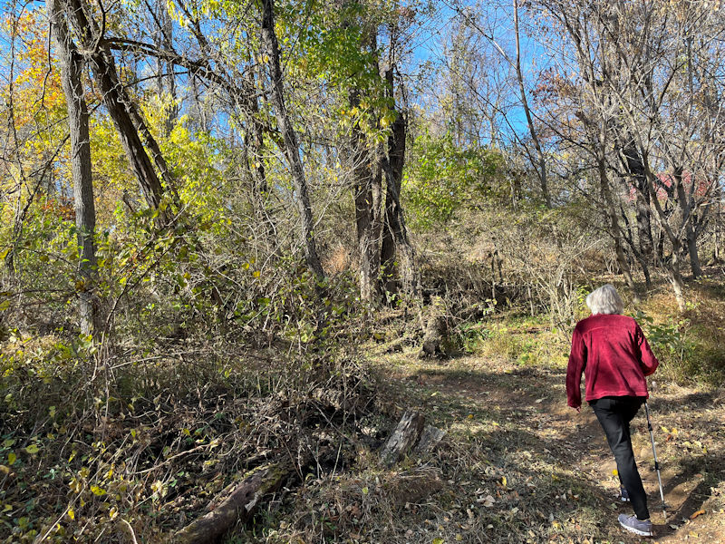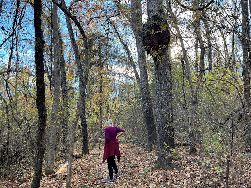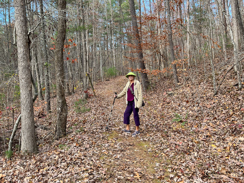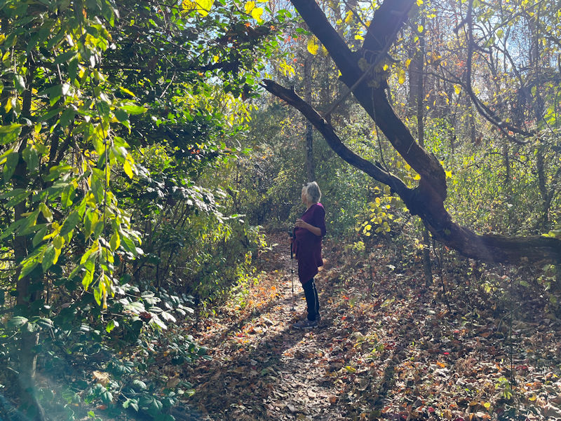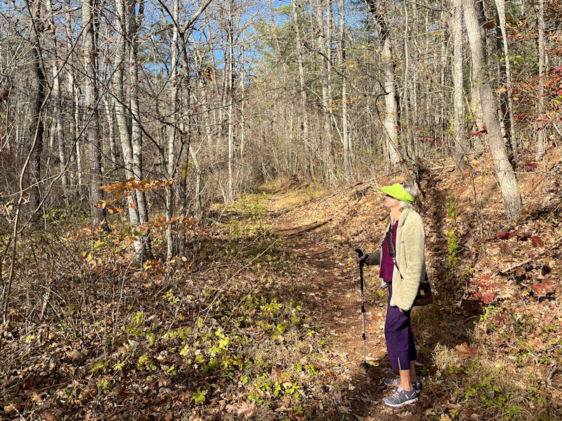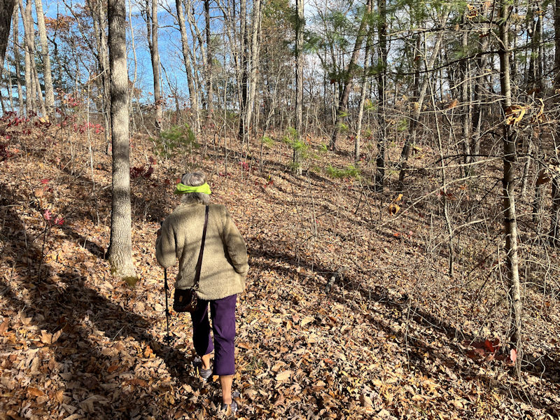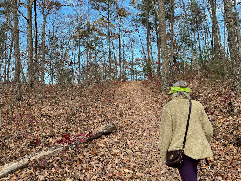 Any moment now. The Uplands Trail continues down the other side of the ridge, but on certain days aging knees argue for choosing the slopier unmarked path down the spine of the ridge.