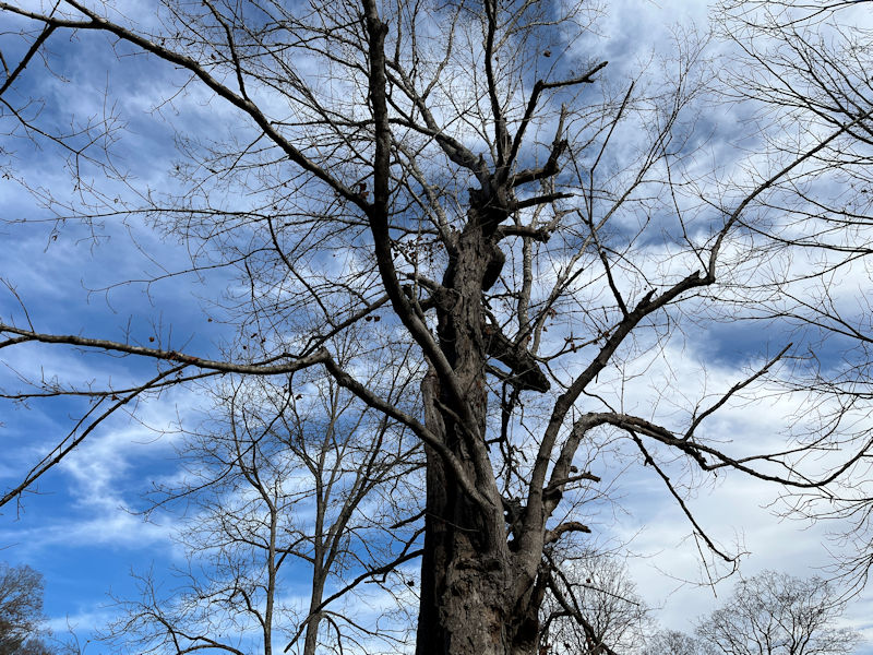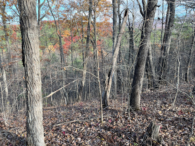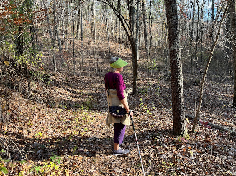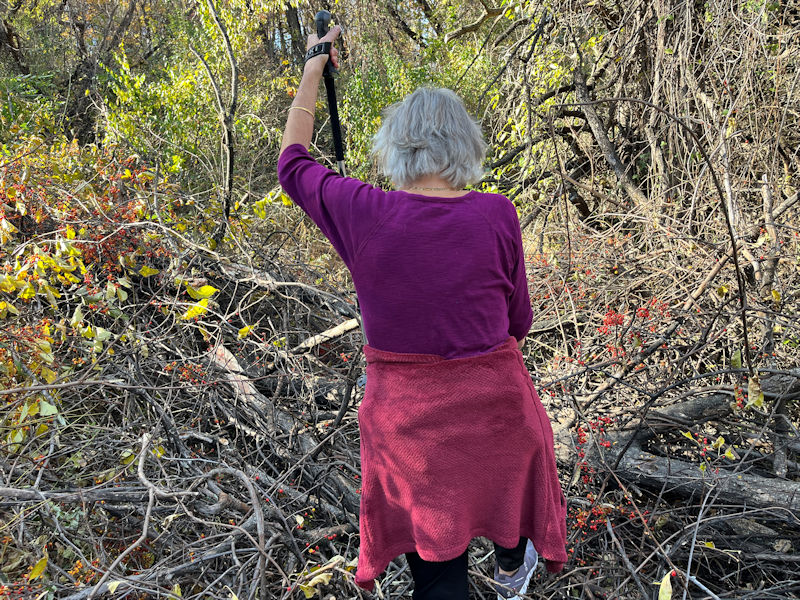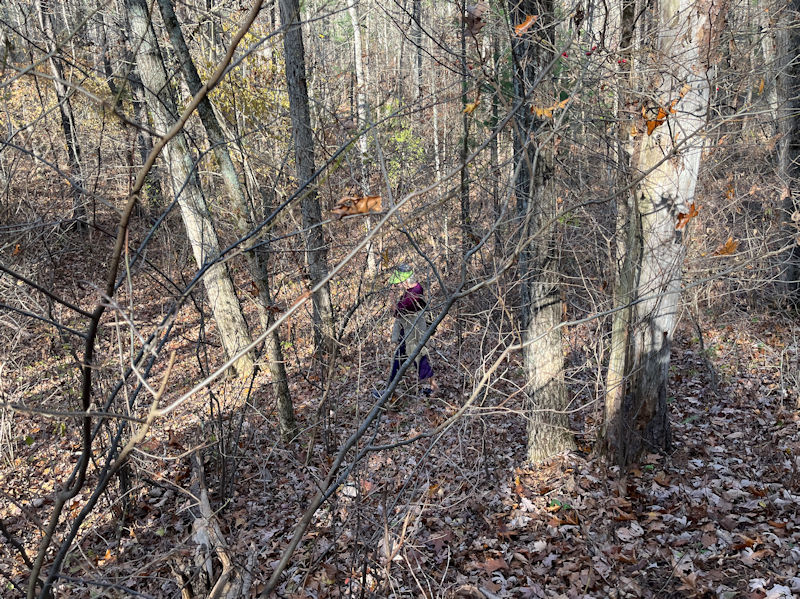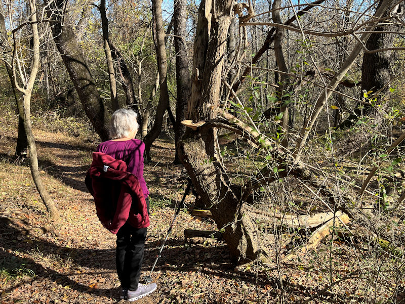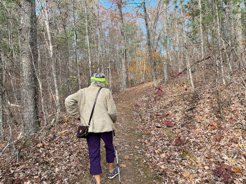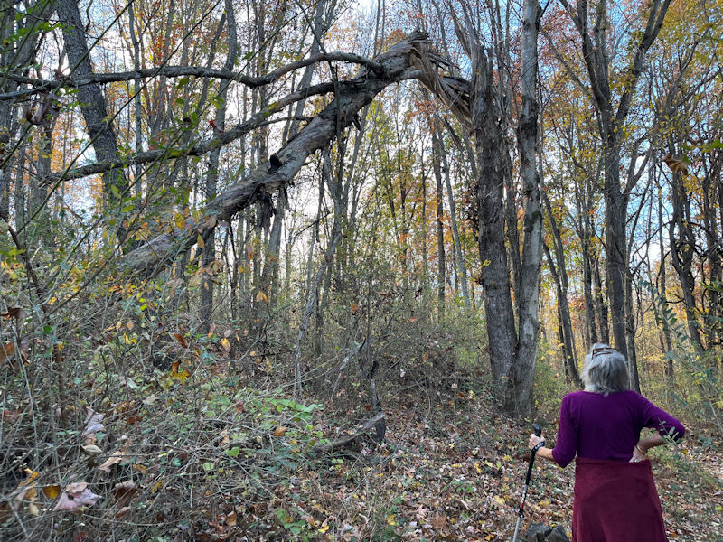 Any moment now. The Uplands Trail continues down the other side of the ridge, but on certain days aging knees argue for choosing the slopier unmarked path down the spine of the ridge.