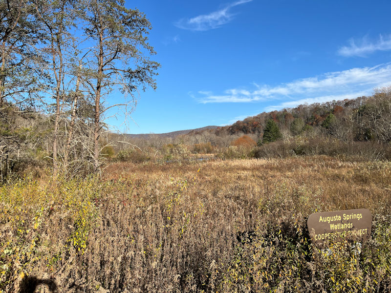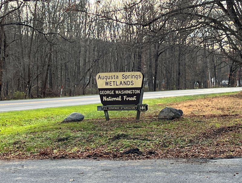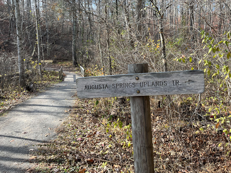 Another fun walk, at [look at the sign]. It's about 20 minutes west of Staunton, at the foot of the mountains.