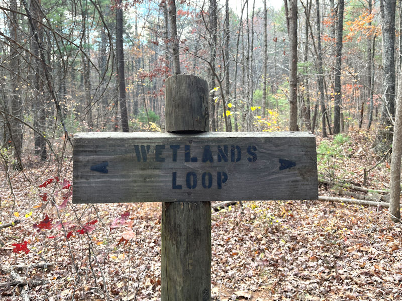 One expresses surprise at finding that sign there. The wetlands loop is down around the central pond. Perhaps it's meant to indicate, if you're lost, that you can go back down in either direction.