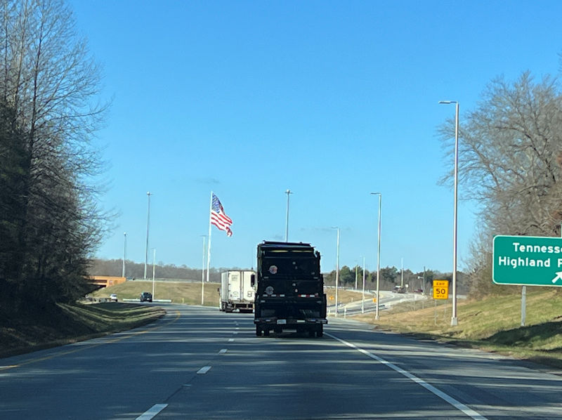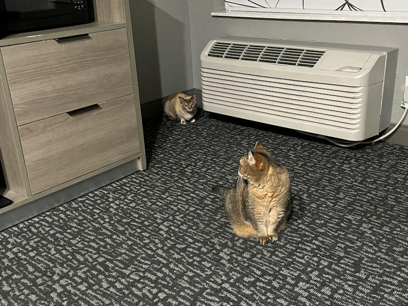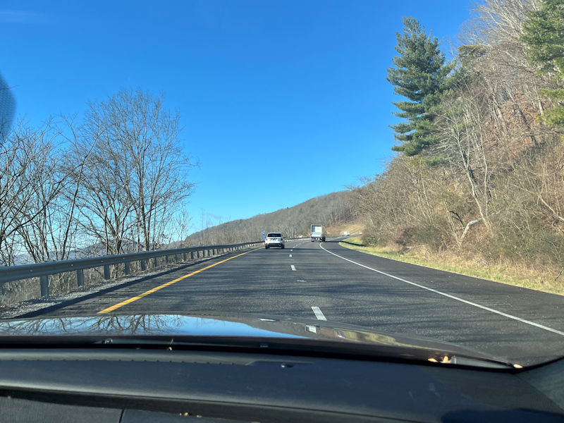 With the cats properly settled into the jam-packed car (the older one immediately going to sleep for the duration, the younger one carefully sedated on a lap), we've hurtled down I-81, one of the most crash-ridden interstates in the east, past the southwestern tongue of Virginia into the welcoming arms of a La Quinta Inn & Suites by Knoxville, Tennessee. 18 December 2025.