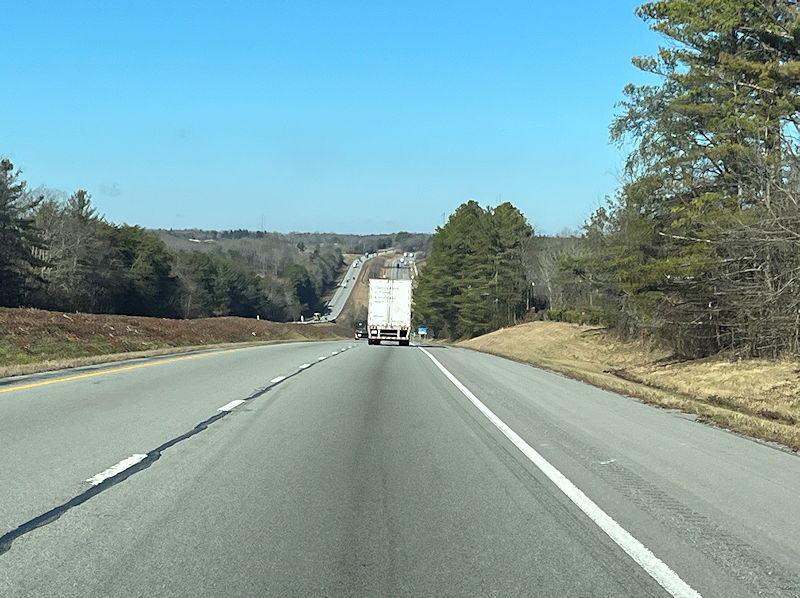 Now, blasting out at an earlyish hour, we're wending westward on I-40 (from this point nearly to our destination), 19 December 2025, with so far very forgiving traffic on the road.