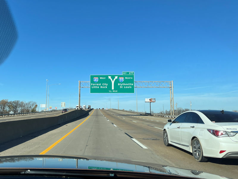 From Memphis, we stick with I-40 across Arkansas . . .