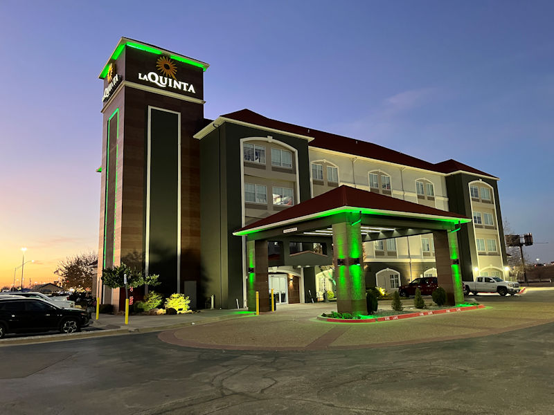 A slight scheduling error this time -- this attractive La Quinta is actually south of I-40 in Oklahoma City by 20 minutes of serious late afternoon traffic. Halfway down towards Norman (where we also lived for a while near the University of Oklahoma).