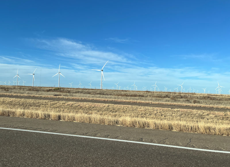. . . in amongst the vast fields of wind turbines across western Oklahoma . . .