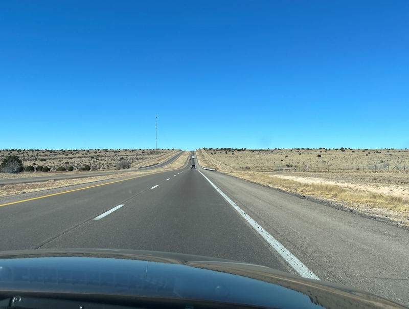 Still flat, we'll be passing the Route 66 Auto Museum in Santa Rosa soon (without stopping). And then Bowlin's Flying C Ranch near Encino, after hundreds of amusing billboards all along the highway.