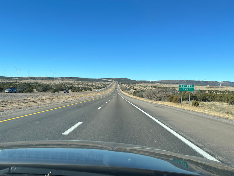 Exit 226 in the offing, after a hour's drive, coming up soon to Exit 218 at Cline's Corners and US Hwy 285 north.