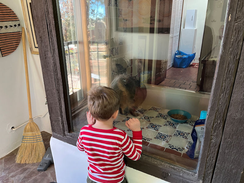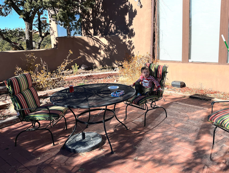 This is Little Buddy (aka George Michael) with his afternoon snack. His mom Emily's is here with him, having driven down from Chicago, whilst his dad and stepsister have sped on to visit family in Mexico for a few Christmasy days.