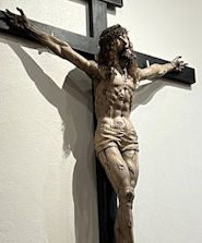 A 19th century wooden crucifix mounted on the wall