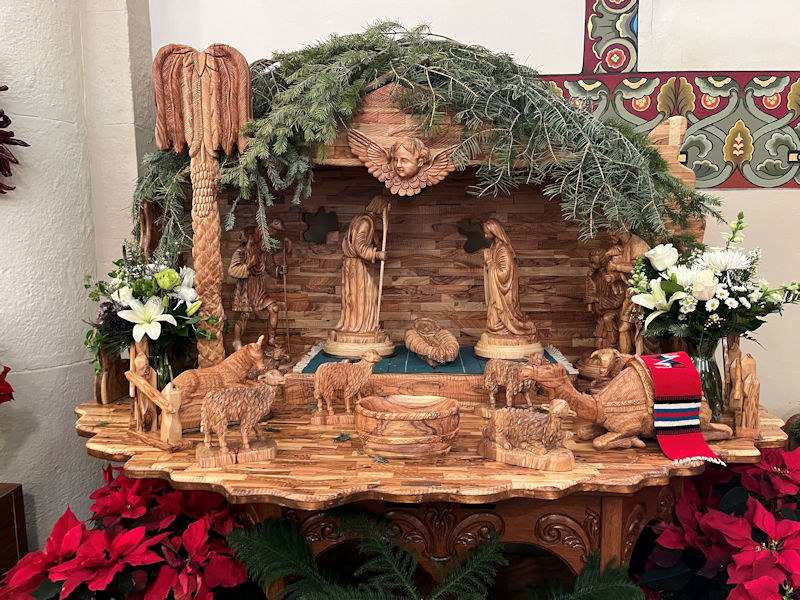 A simple nave with two side aisles. The Christmas decorations round the columns make a pleasant effect.