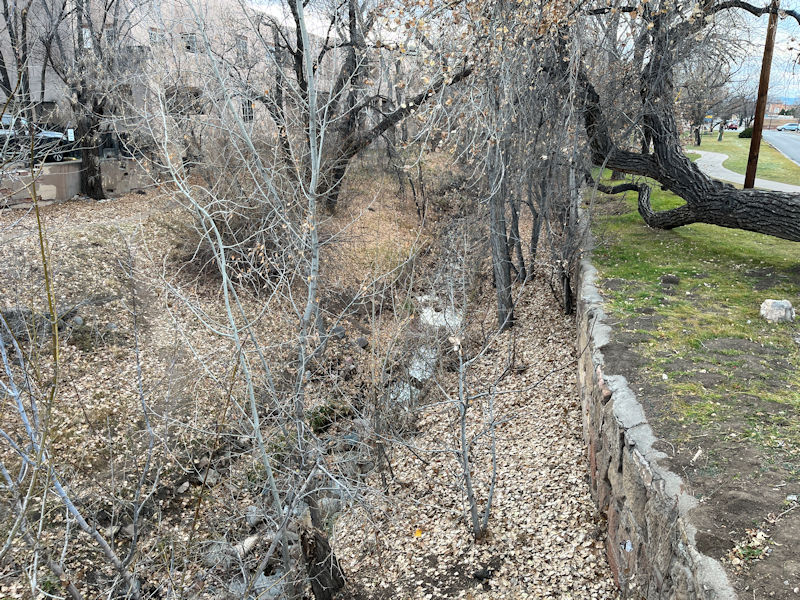 The Cathedral Park on this side -- there's a small 'Stations of the Cross Prayer Garden' (which we didn't see) with 14 life-size statues round the far side, in the remains of Abp Lamy's kitchen garden.