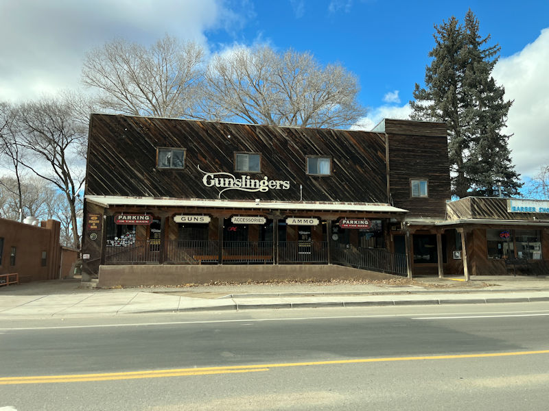We're arriving at the southern end of town on the main street north, the Paseo Del Pueblo Sur, and admiring the attractive Lovelace Urgent Care [which, according to Google Maps, is 'permanently closed'].