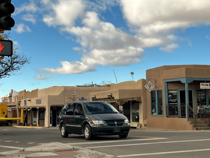 In fact, as we've subsequently learnt, we're staring here into the Taos Plaza (the famed gazebo is back there behind that car at the intersection; who knew?).