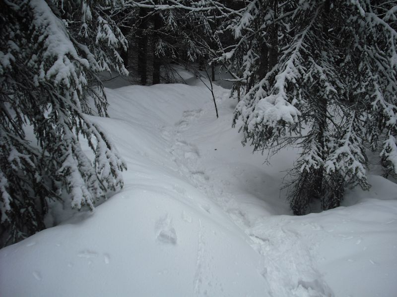 A transcendental experience, a beautiful day, the sun peeking through from time to time, on a trackless snowy hillside. A nearly trackless snowy hillside.