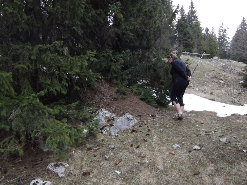 12 May, the observation deck at Crêt de la Neuve. The educational plaque identifying the surrounding mountain vistas is gone. Vandals? It was being renovated, and was back in place when we arrived here again two weeks later.
