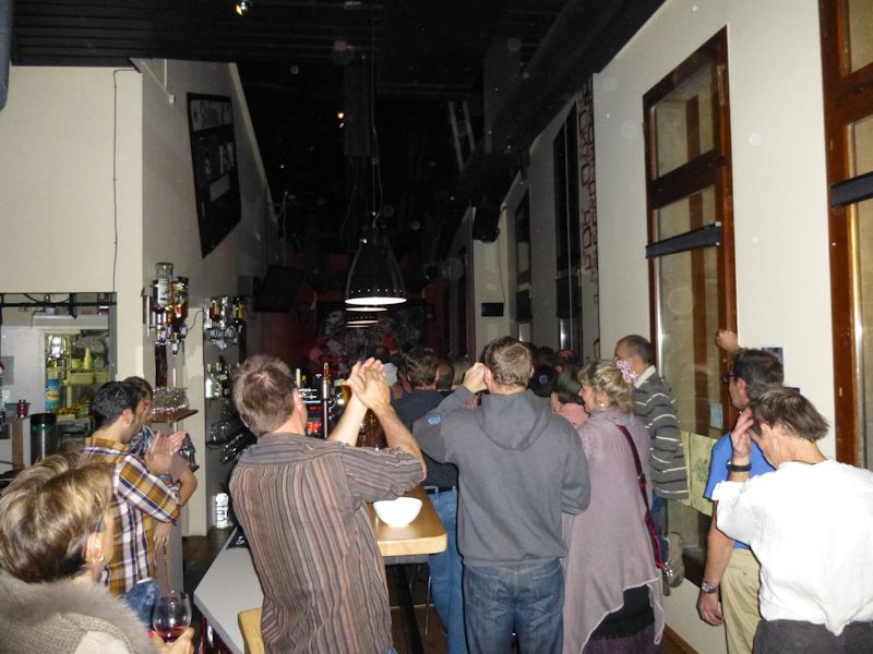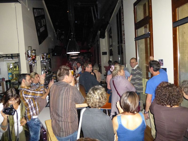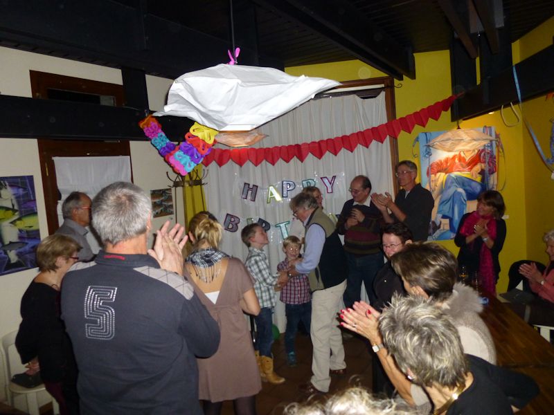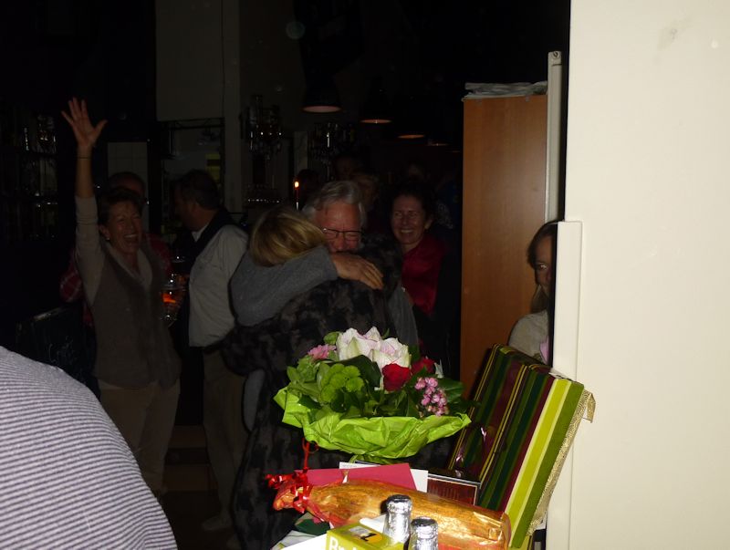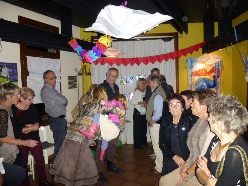A good 80 old friends waiting quietly in the Station Bar (formerly the buffet de la gare) at the Feydey rail station in Leysin, and Mr Larry (as his students called him) really has been taken unawares.