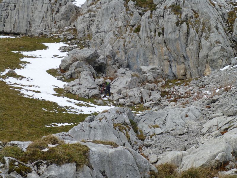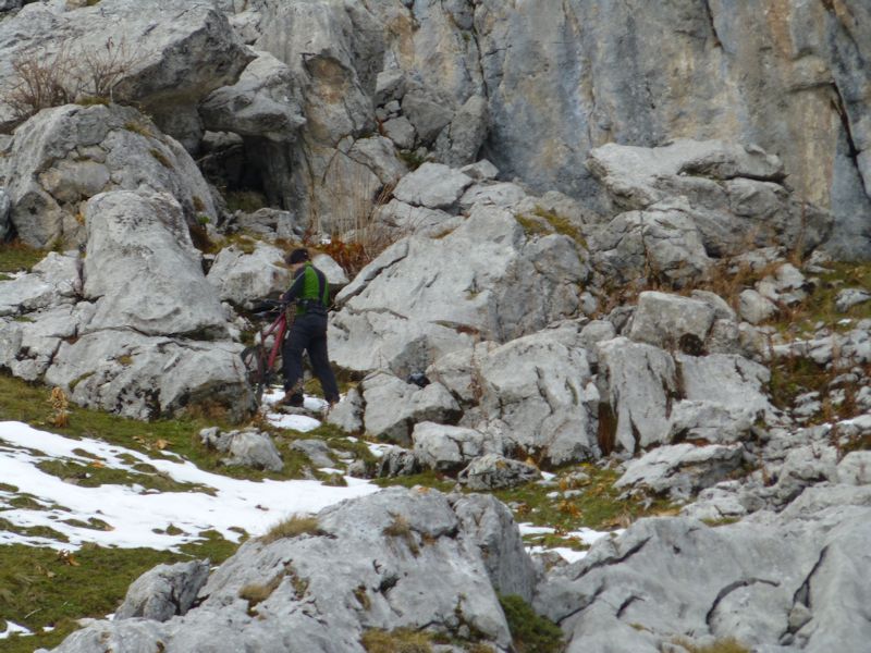 A hardy fellow who's just come running down from the rocks and is reassembling his mountain bike where he'd left it.