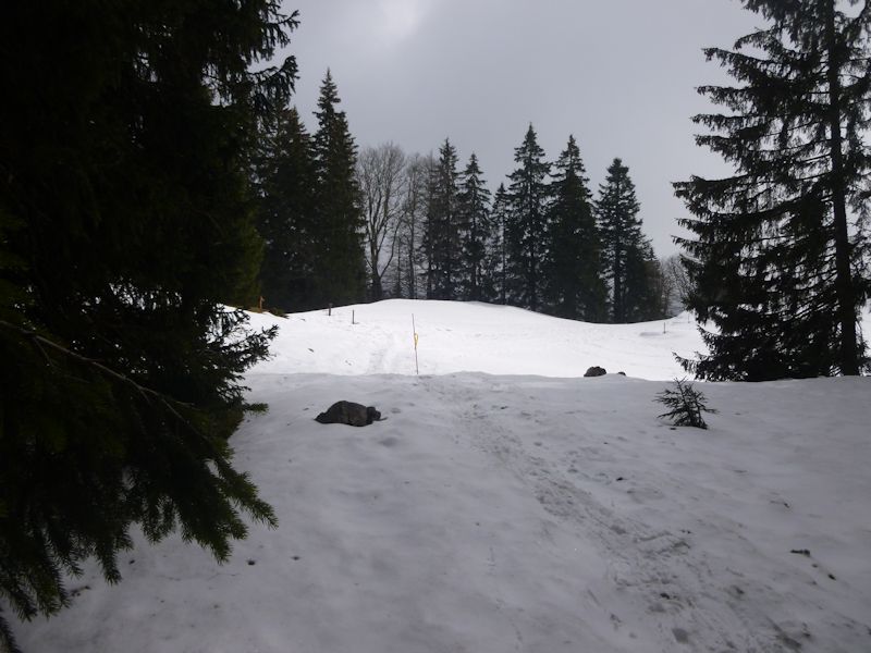 The summit of La Dôle peeking down on the Col de la Givrine. And no new snow today.