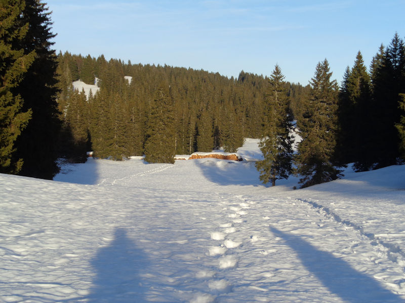 We've started off from here many times over the years, in a plowed-out layby (1313m altitude) near the farm of Meylande Dessus on the Marchairuz road to the Vallée du Joux, but not since we moved away from the Jura four years ago, so our little bushwhacking expedition will also be a test of memory, seldom a good idea.