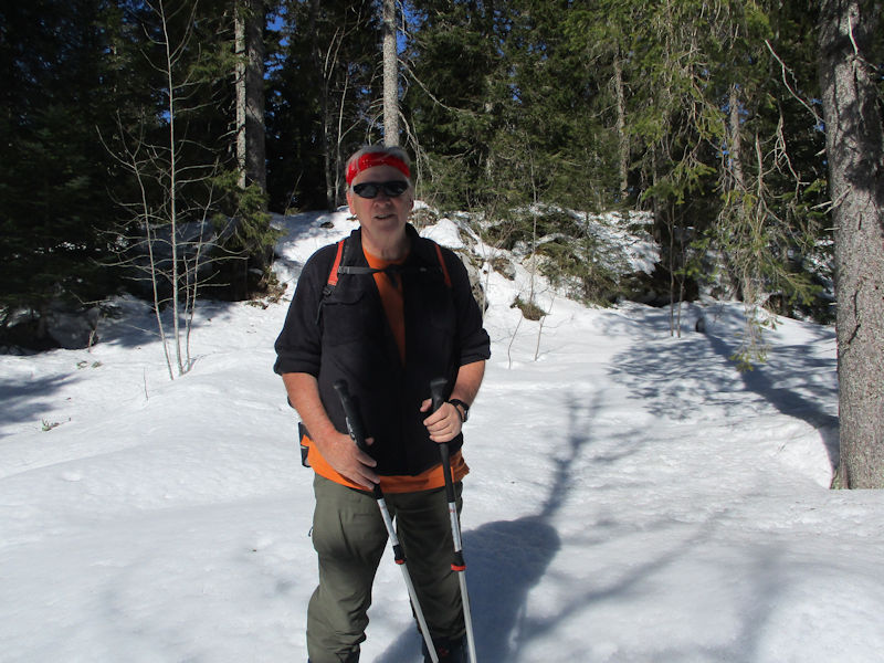 Fine weather in the Jura, 22 February 2019, at the Col du Marchairuz, between Lake Geneva and the Vallée du Joux and France. We're waiting for our guide to arrive, with remarkable patience.