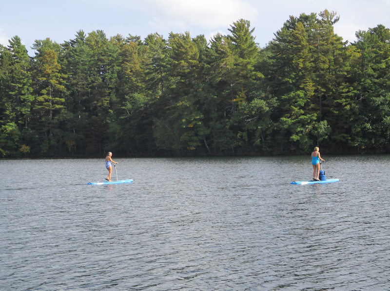 Kristin pedalboarding across the lake to meet Stephanie for some healthy exercise, 19 September 2019