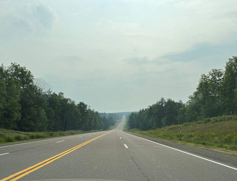 We're on the straight-arrow US Rte 2, running east-west across the Upper Peninsula of Michigan . . .