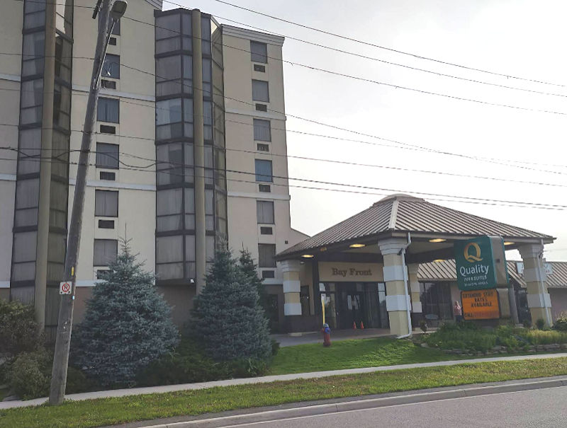 We're booked into the Quality Inns & Suites Bay Front, and we really are on the bay front . . .