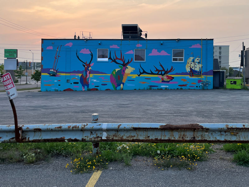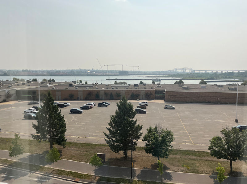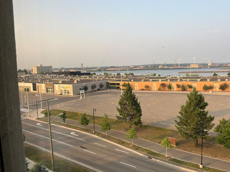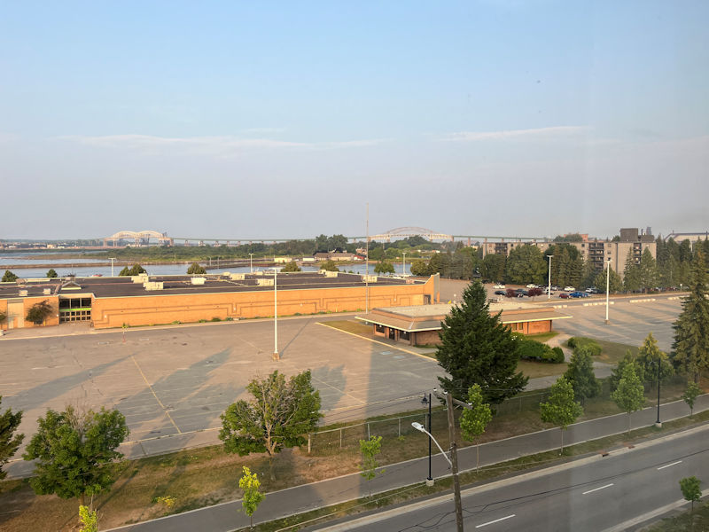 The southeastern view from the Quality Inn sixth floor along Bay Street. Today we're off up the coast, bound for so-called 'Batchawana Bay'. Breakfast in the Quality Inn was not inspiring, unless you really like waffles and scrambled egg wraps. (And wee tiny plastic juice cups.)