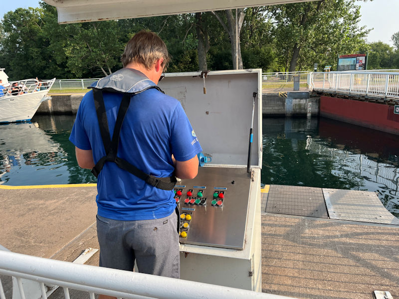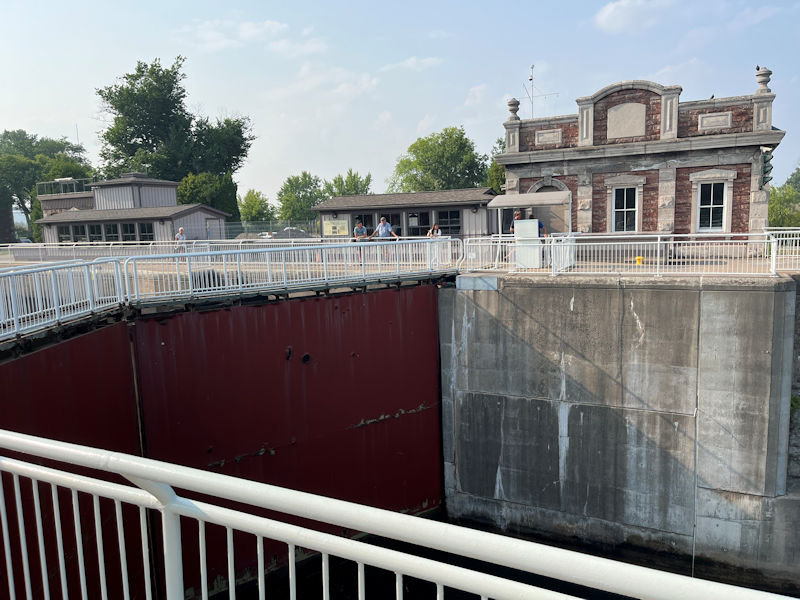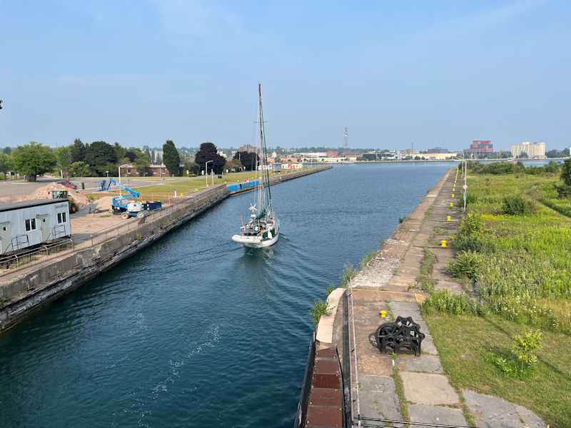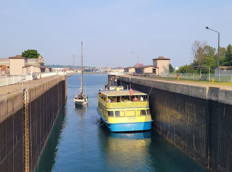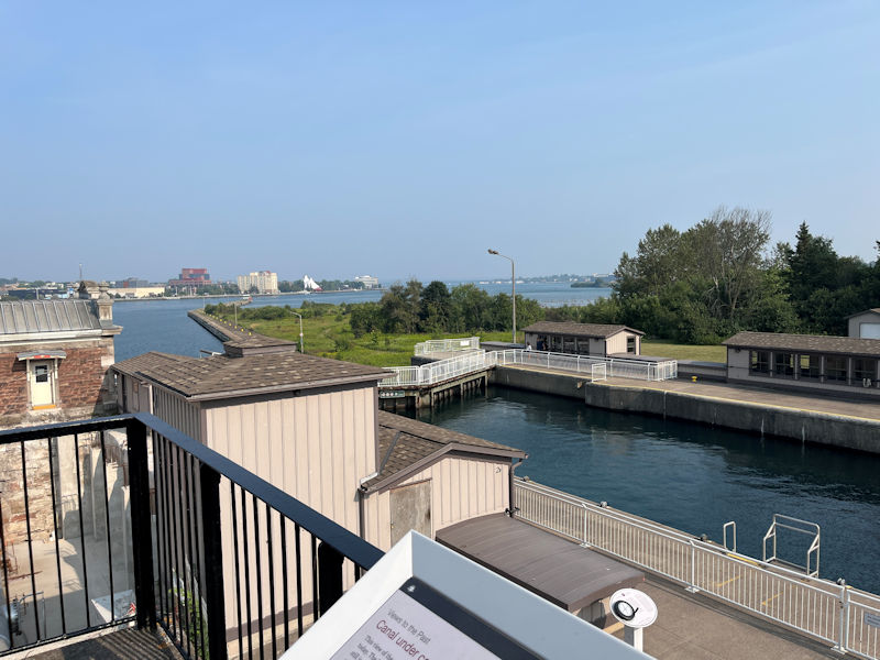 There are presently two lock canals on the US side, the MacArthur Lock, 240m long, built in 1943, and the Poe Lock, first built in 1896 (at that time, 240m, then the world's largest, but now 370m long) and these are the ones used by shipping, with no fees to get through. There's a third one now in construction, to be finished (we're told) in 2030.