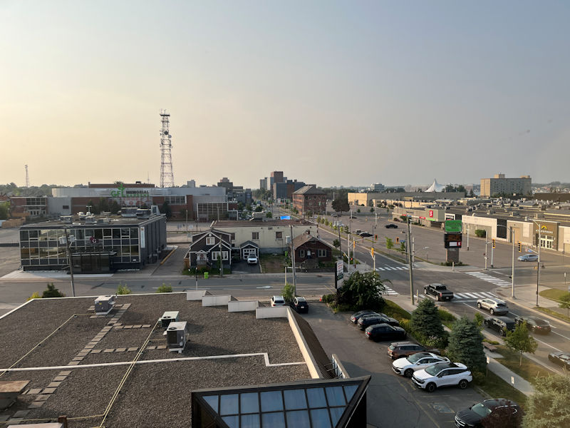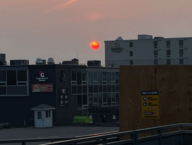 That's about where the sun would be at this hour, behind the Quality Inn Bay Front . . . but could that really be the sun we've known and loved for so long? Maybe it's all about Canadian wildfire smoke in the air.