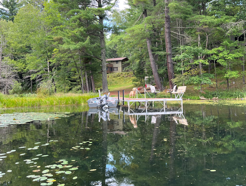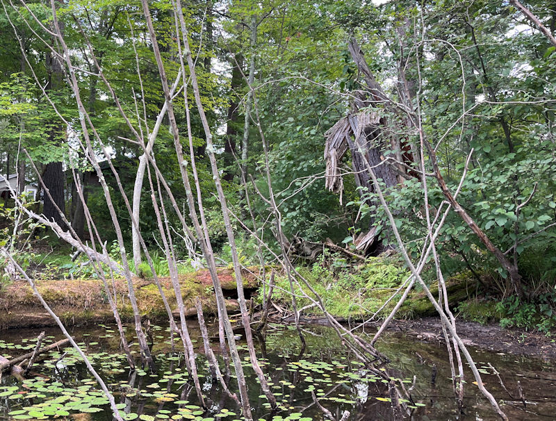 Probably the most impressive shoreline swamps on the lake are in Tomahawk and South Bays and along the South Shore Drive, but we've got a few worth checking out here in the North Bay (photo map below). This is a little marsh adjacent to our boathouse which at some point our neighbors on the far side christened as . . .