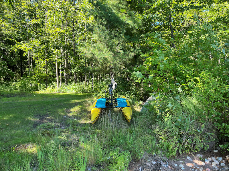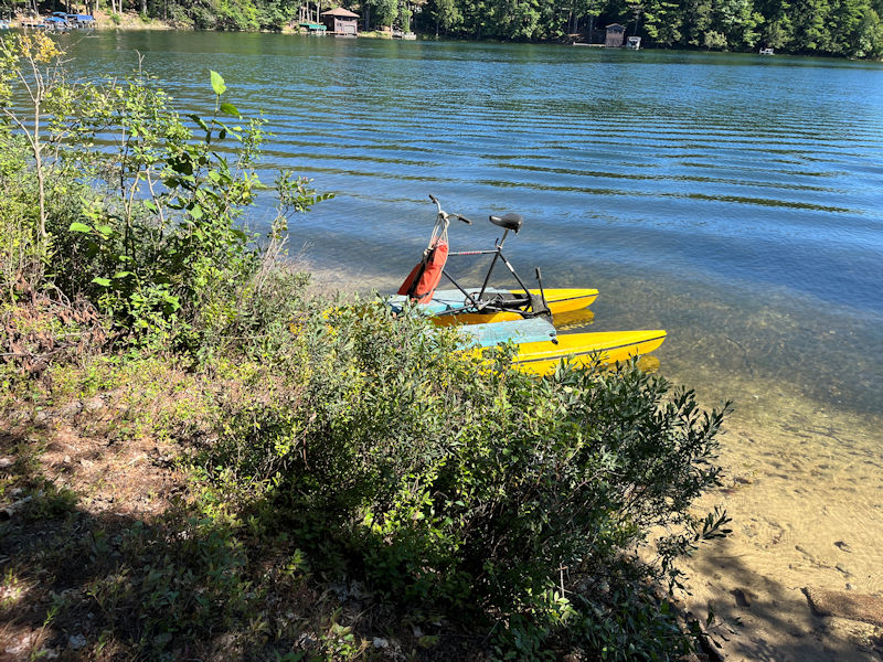 There's Cousin Rob's old hydrobike, now out of use alas. His wife Elke has just gifted it to our mutual friend Oscar, and before Oscar comes back up to the lake, we're verifying where it's been kept in the past 18 months.