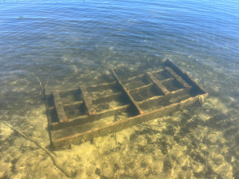 Just offshore, what we amateurs might guess is a fish crib -- though not yet rehabbed